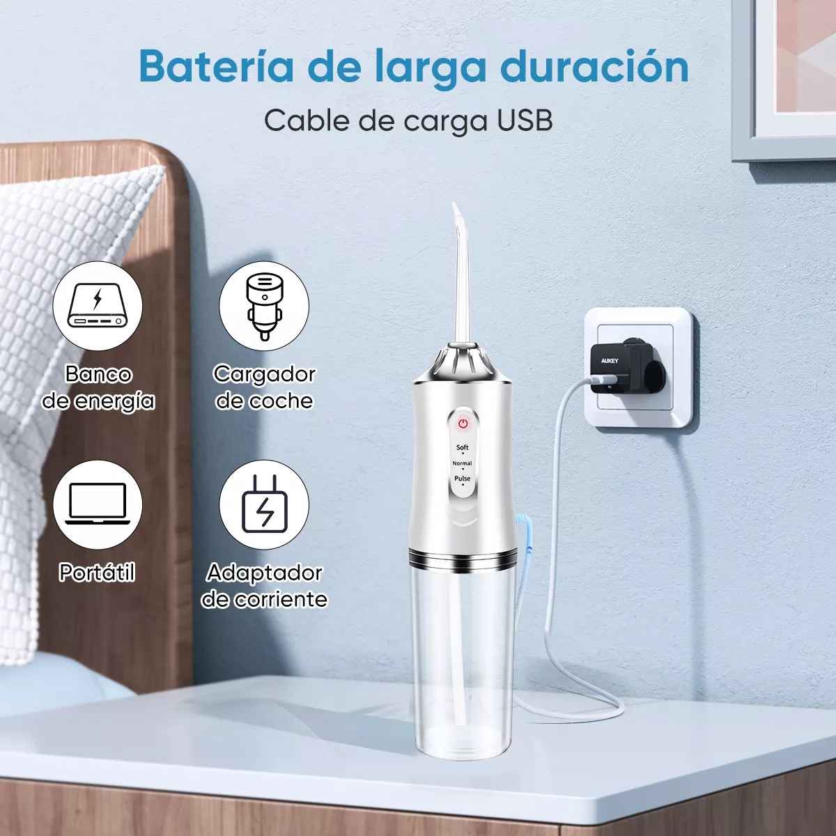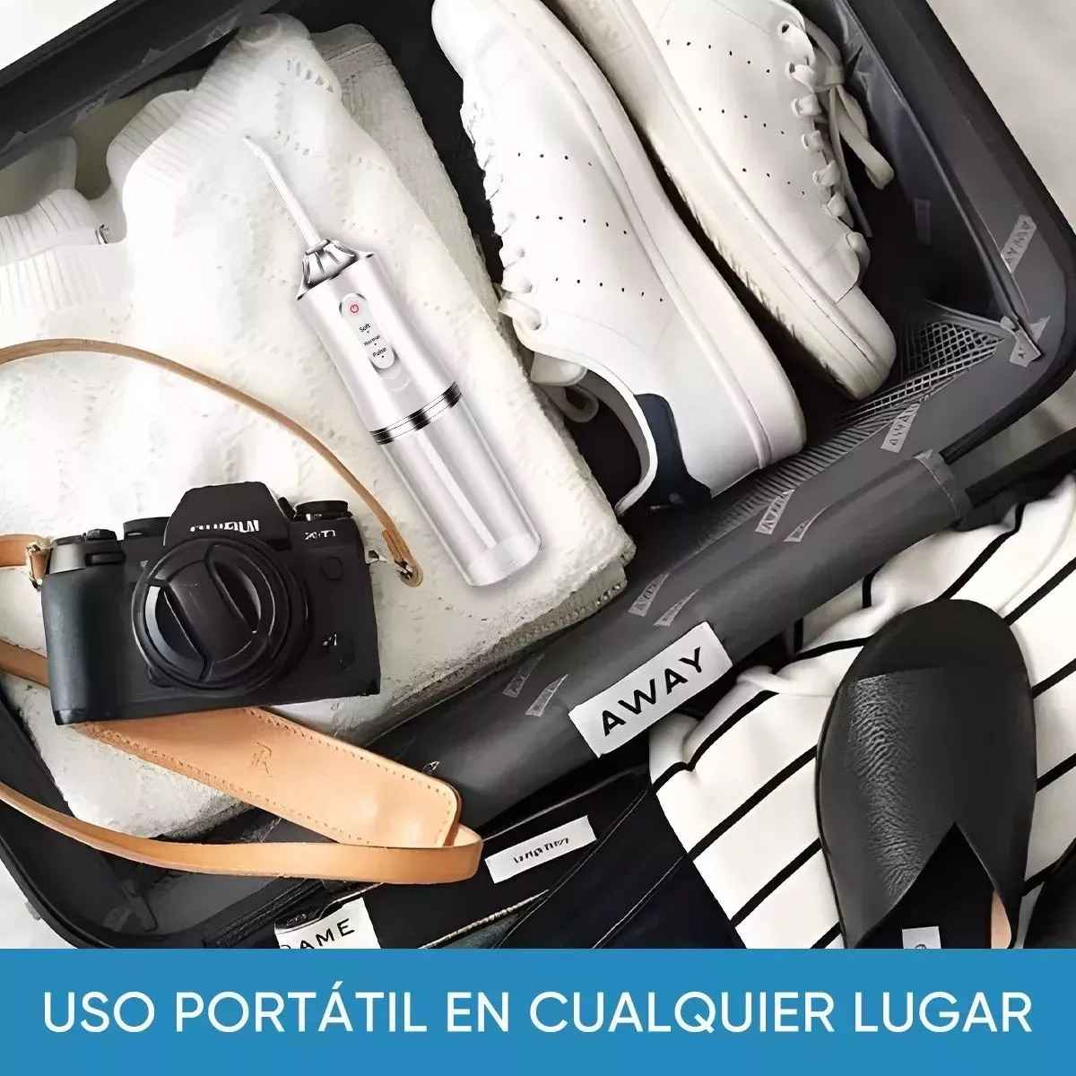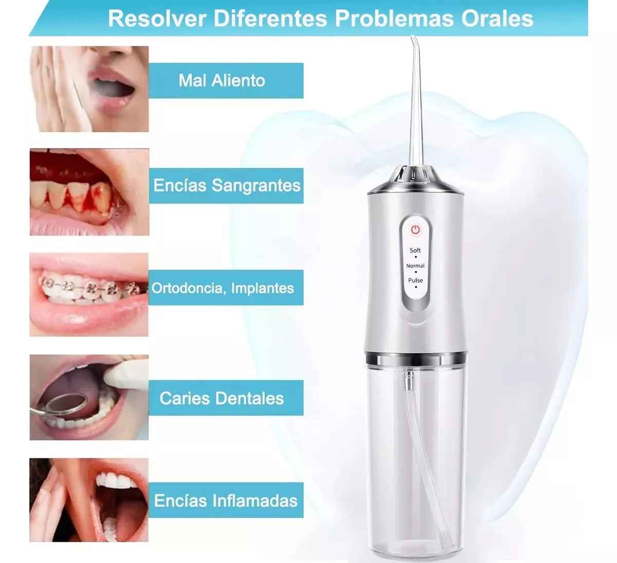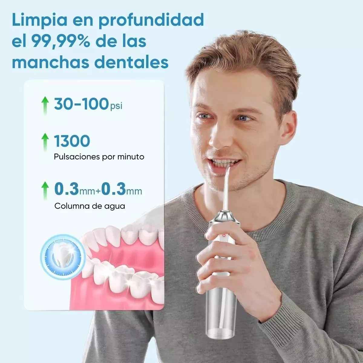 Di adiós al hilo dental tradicional. Con su potente chorro de agua y boquillas 360°, elimina placa y restos de comida ¡rápido y sin esfuerzo!