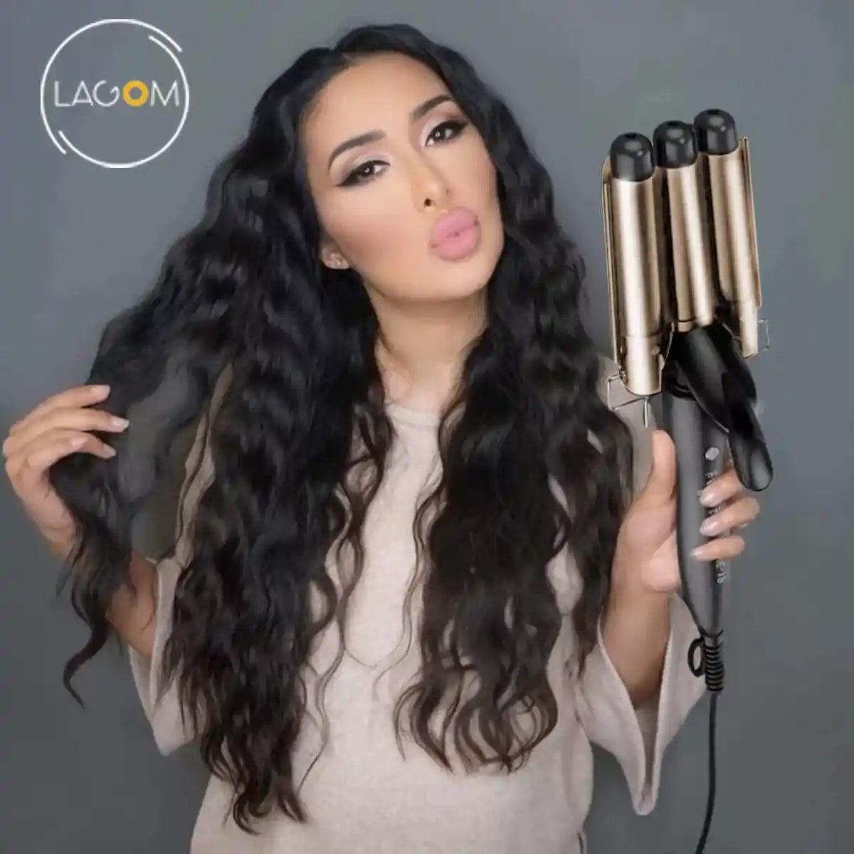 ¡Dile adiós al cabello plano! Esta rizadora de triple barril crea ondas hermosas 3 veces más rápido que las planchas comunes 🔥