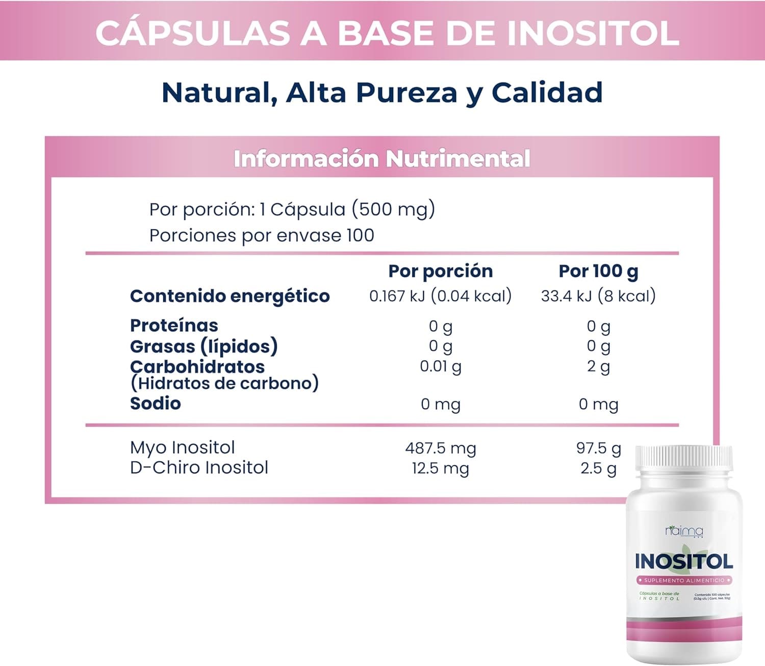 Cada cápsula aporta 500mg de Inositol puro para apoyar la función ovárica y el balance hormonal en mujeres. 🌸 💊