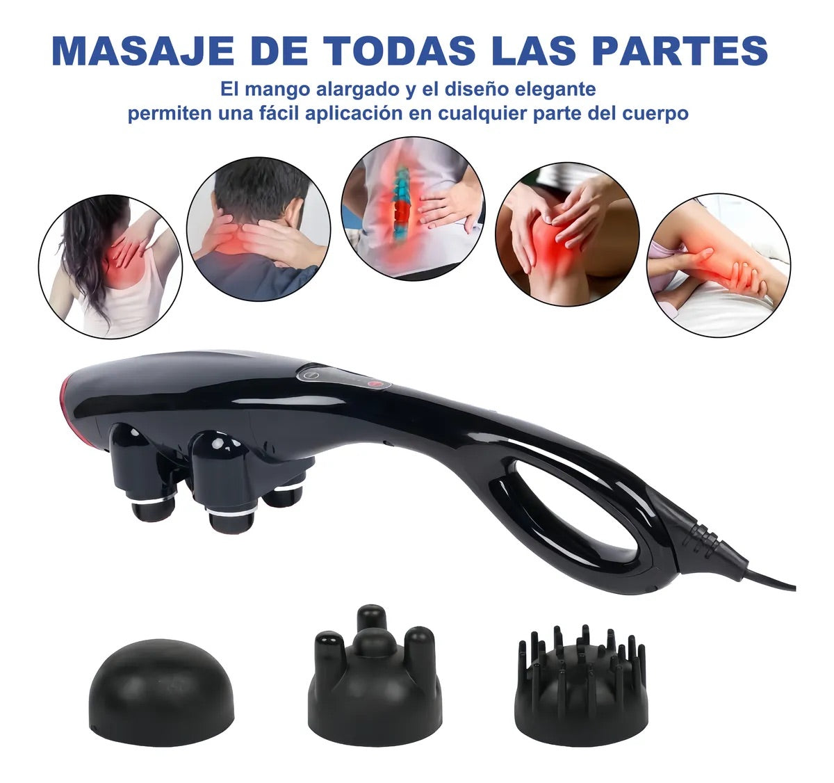 Siente alivio inmediato en zonas difíciles de alcanzar gracias a su mango ergonómico y calor opcional. Ideal para uso en casa u oficina.