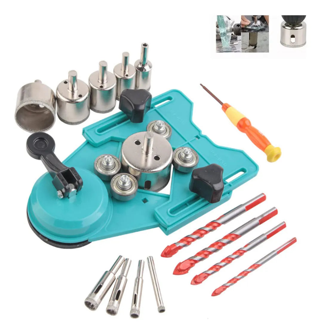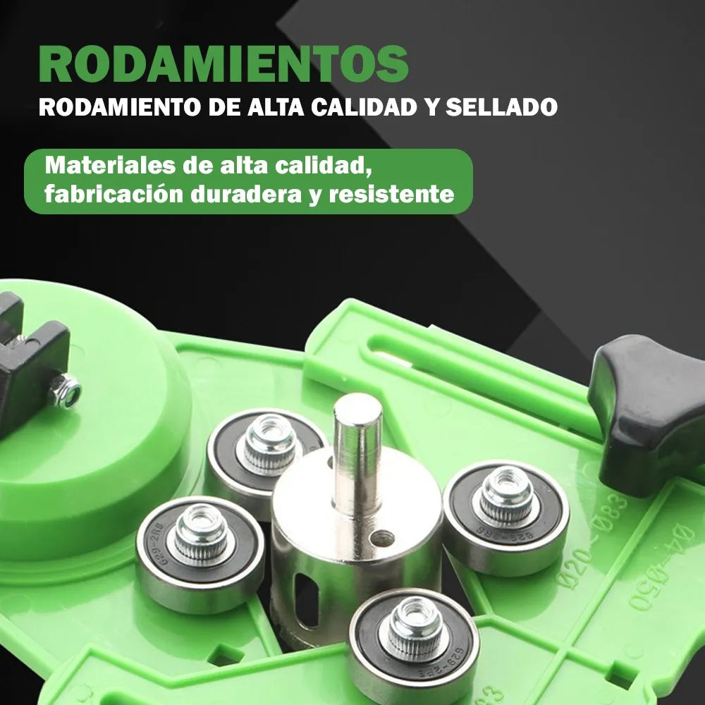 Su guía ajustable con ventosa evita deslizamientos y protege tus superficies. Las brocas de diamante garantizan perforaciones suaves y sin grietas, ideales para reparaciones, decoraciones o proyectos creativos.