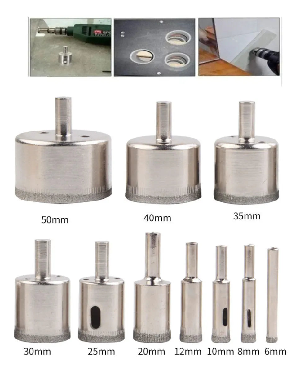 ✅ 16 brocas de diamante (6–50 mm)