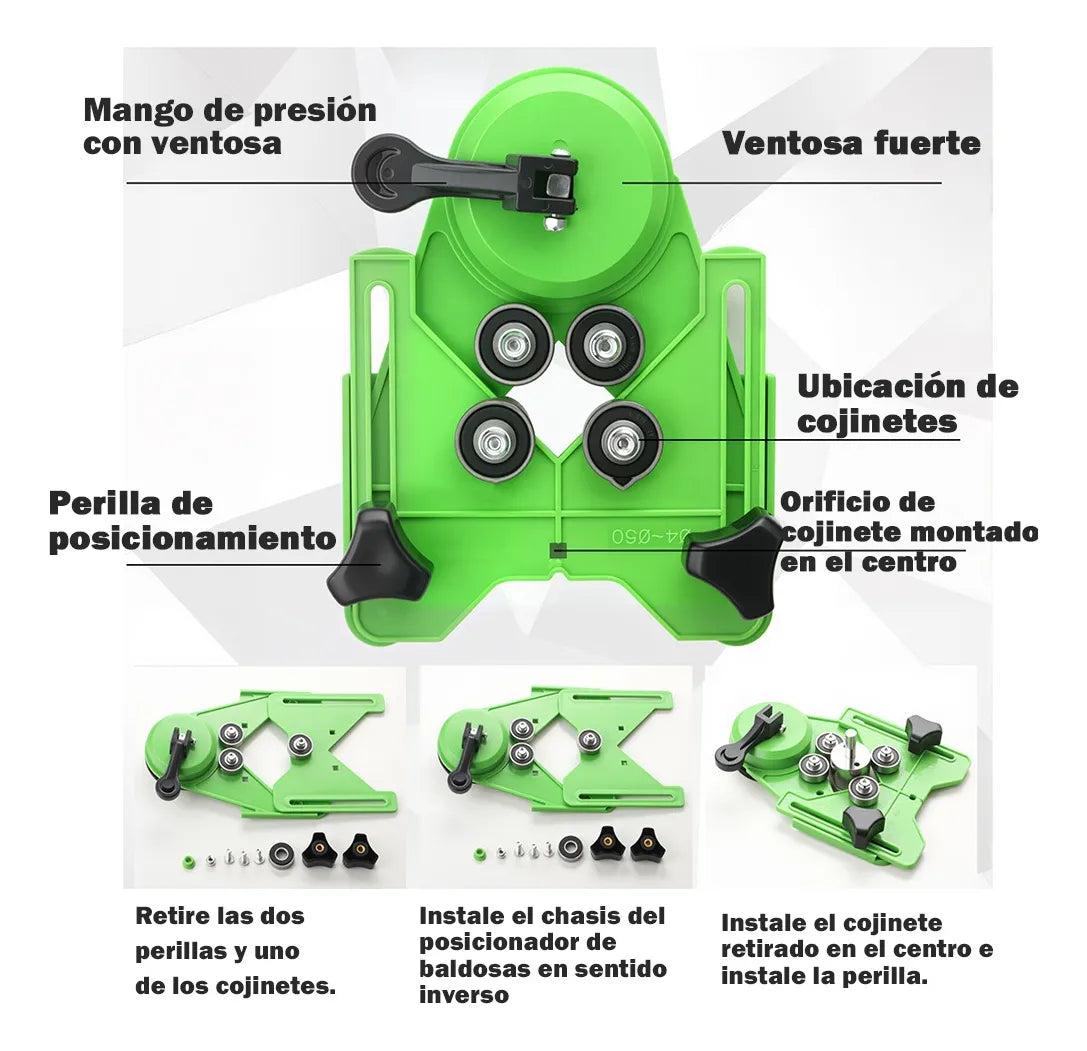 ✅ Guía ajustable con ventosa para máxima estabilidad 🧱