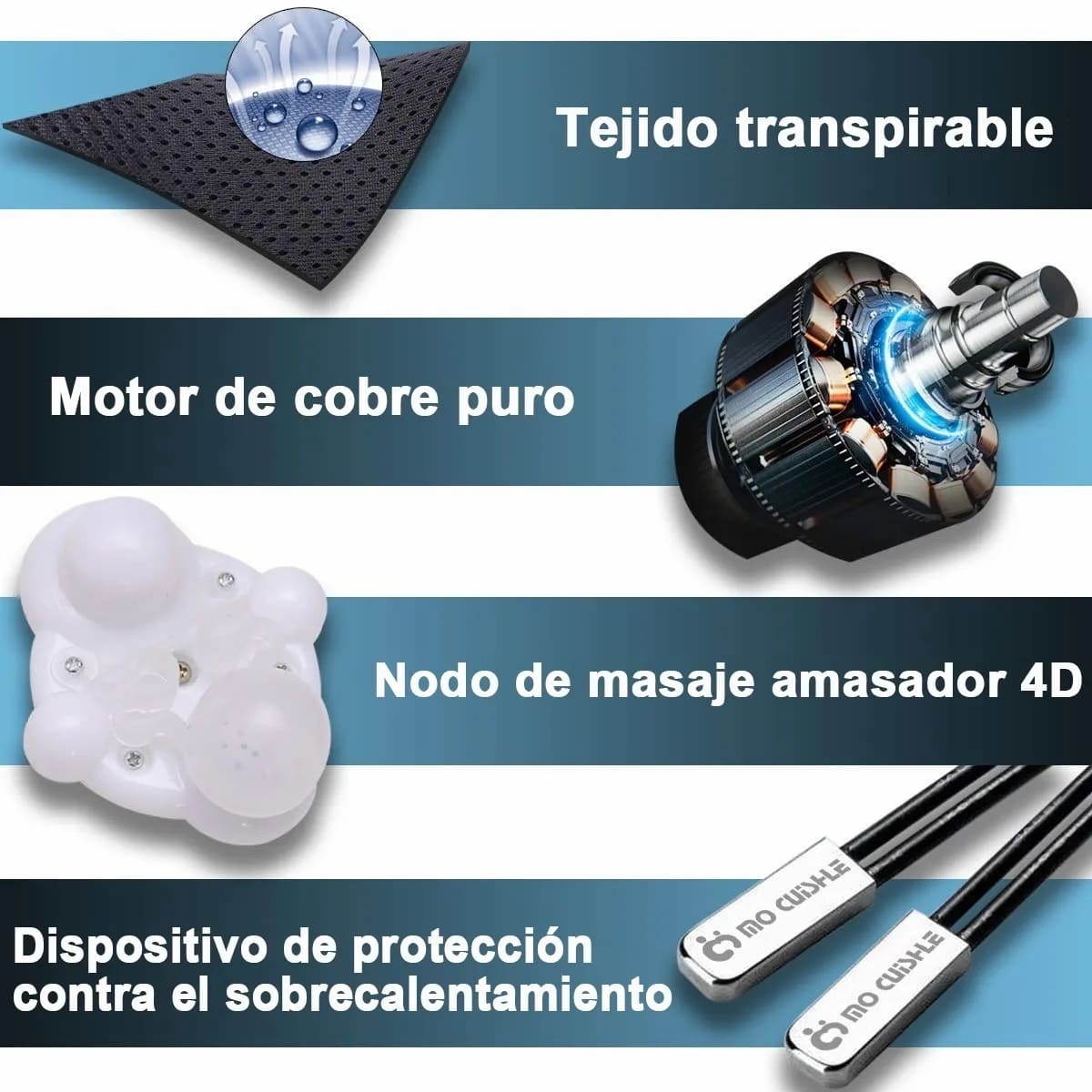 • Masajeador Shiatsu con 8 nodos de amasado profundo 3D que imitan las manos de un terapeuta profesional.