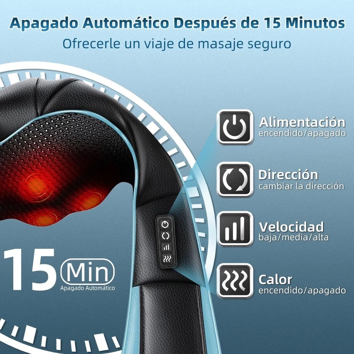 4. Este masajeador de espalda durante 15 minutos dejará de funcionar después del masaje. Se recomienda que lamáquina se detenga durante10-20minutos antes de continuar usándola.