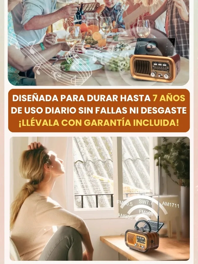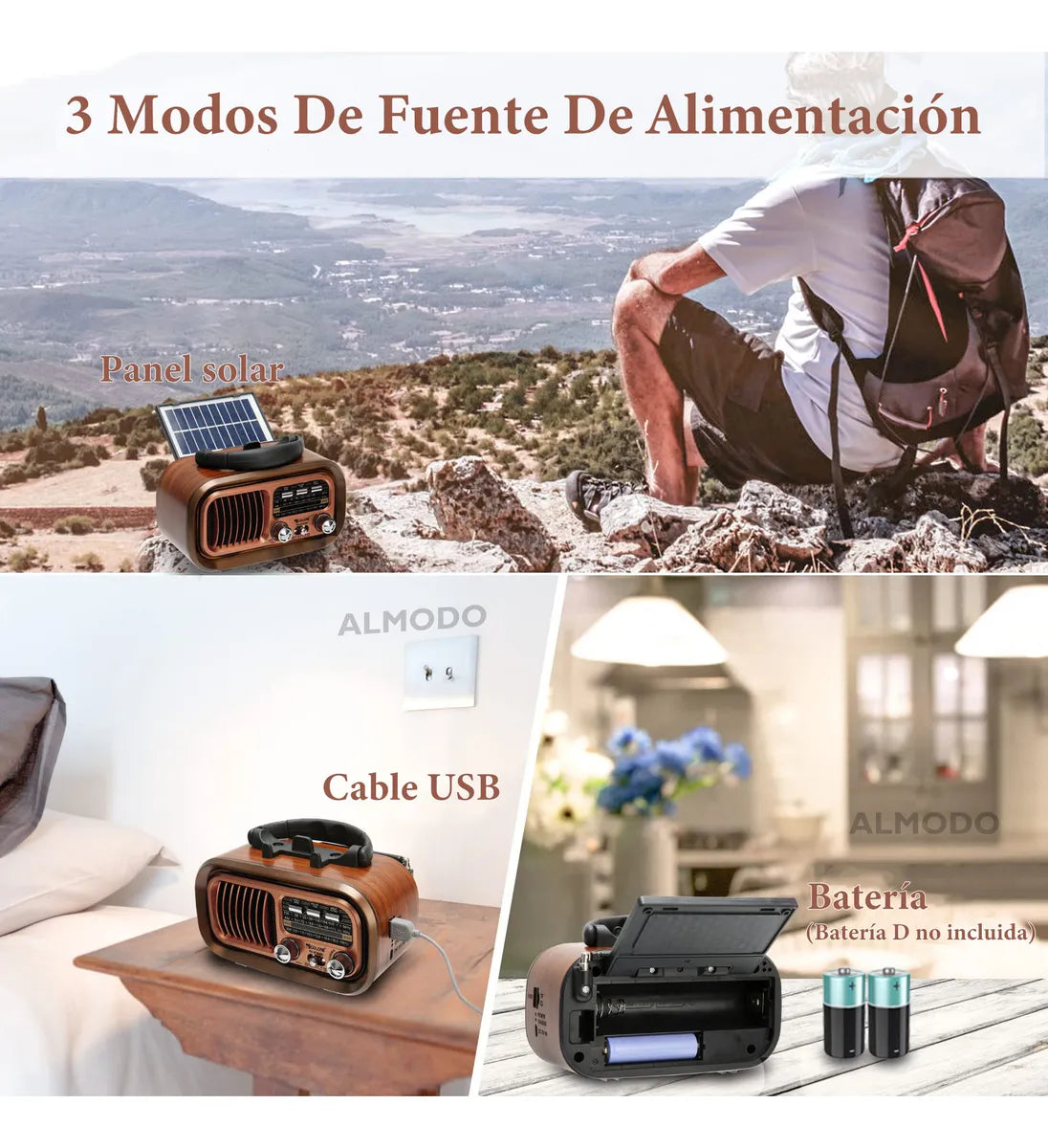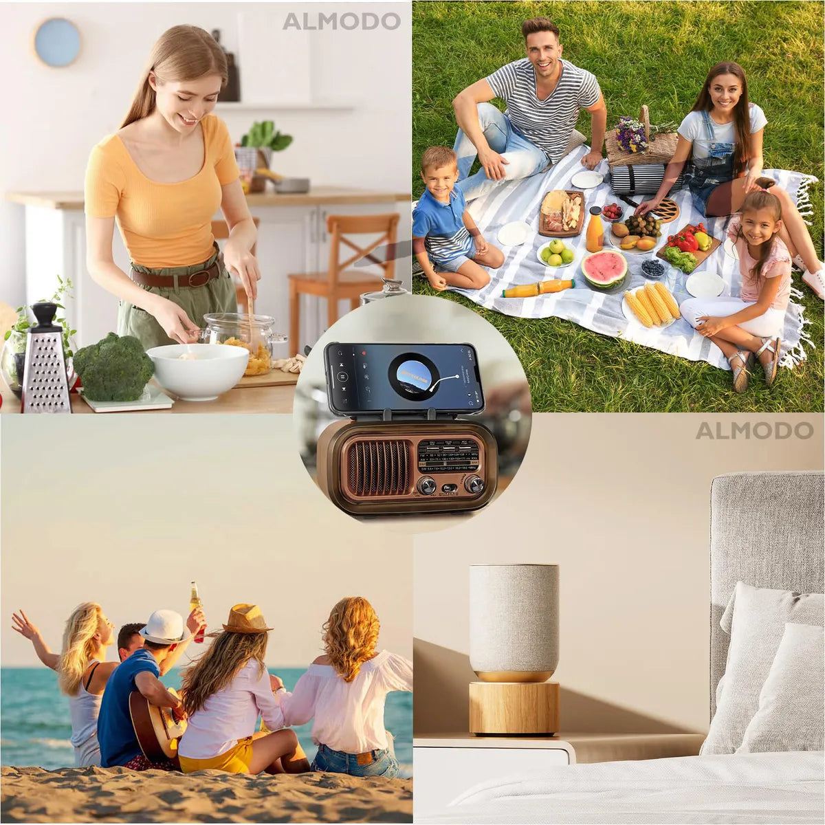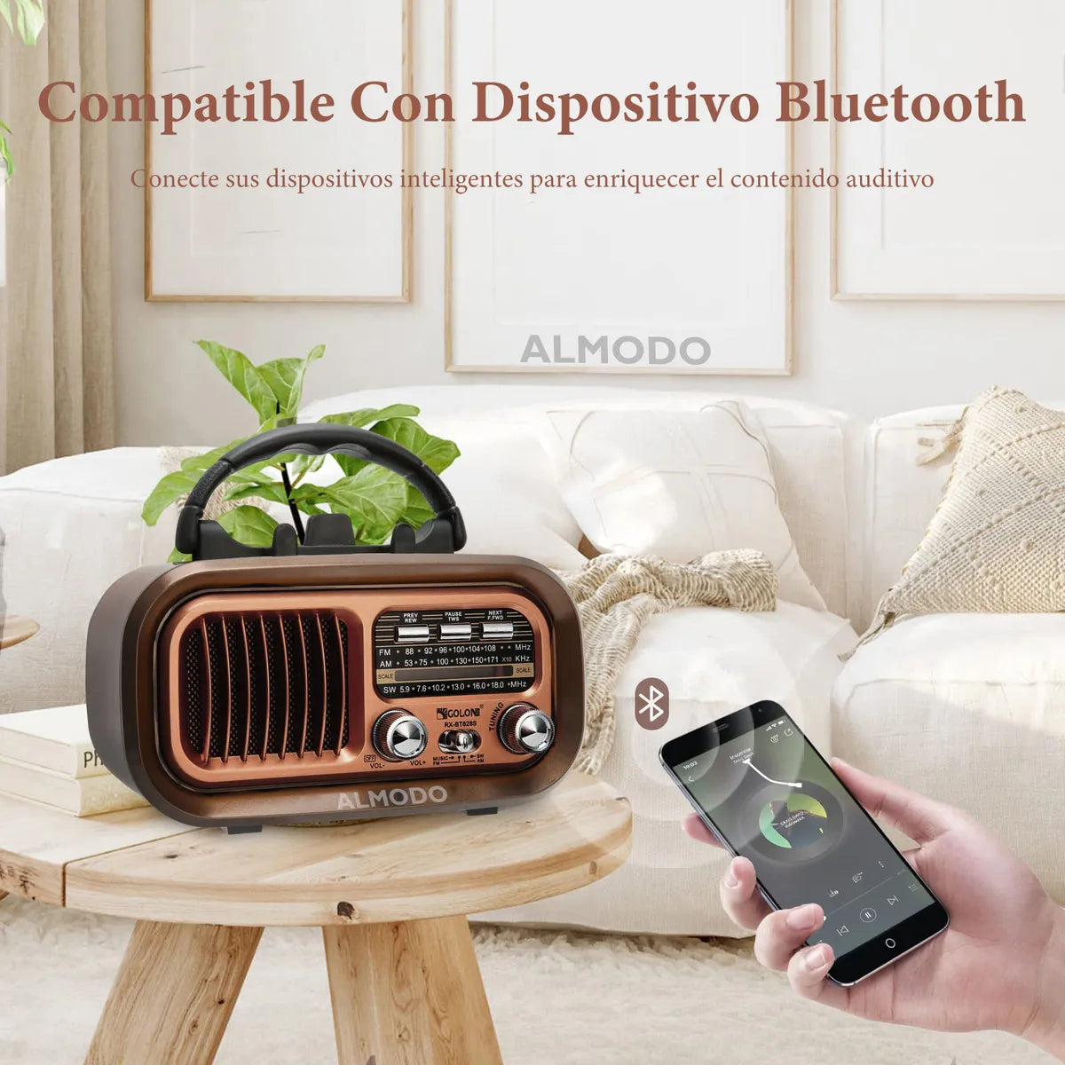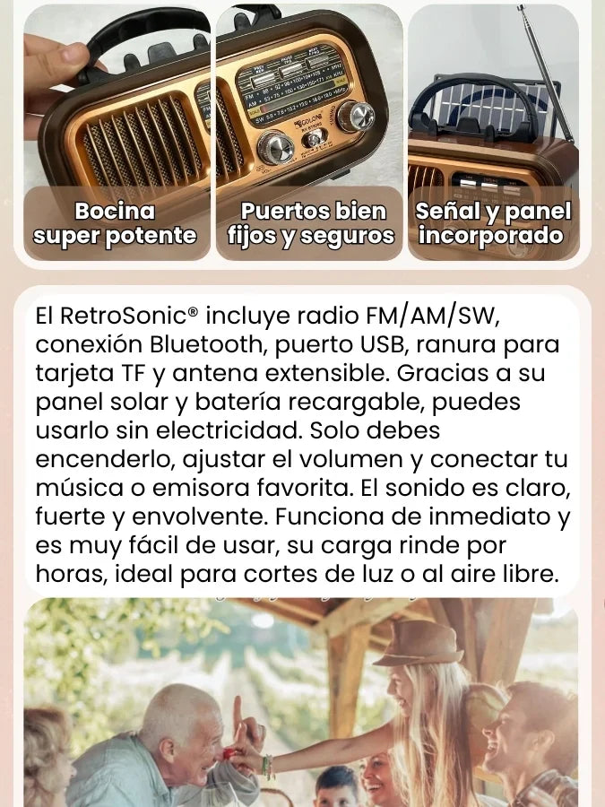 Disfruta de tu radio vintage AM/FM con Bluetooth y energía solar, perfecta para acampar, pescar o relajarte en casa con estilo retro.